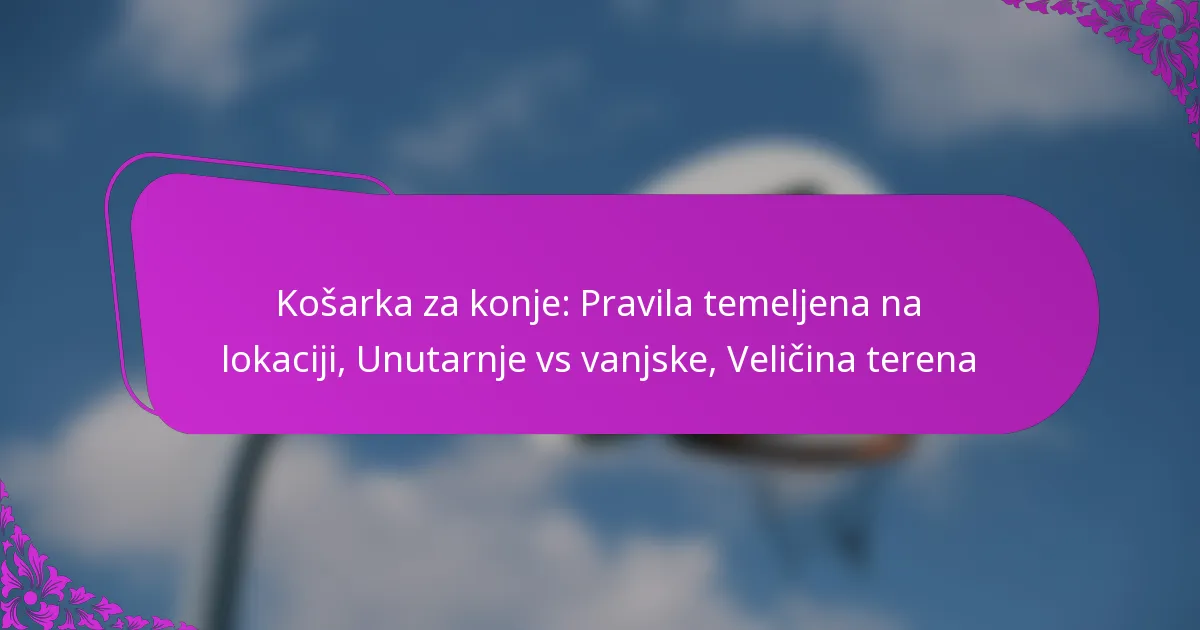 Košarka za konje je jedinstveni sport koji uključuje pravila temeljena na lokaciji, koja se mogu značajno razlikovati ovisno o regionalnim običajima i specifičnom okruženju igre. Odabir između zatvorenih i otvorenih prostora donosi različite izazove, utječući na način igre, performanse konja i zahtjeve opreme. Osim toga, veličine terena značajno variraju, pri čemu tereni u dvorištu obično mjere između 30 i 50 stopa, dok tereni u dvoranama mogu doseći od 80 do 100 stopa, nudeći šire iskustvo igranja.